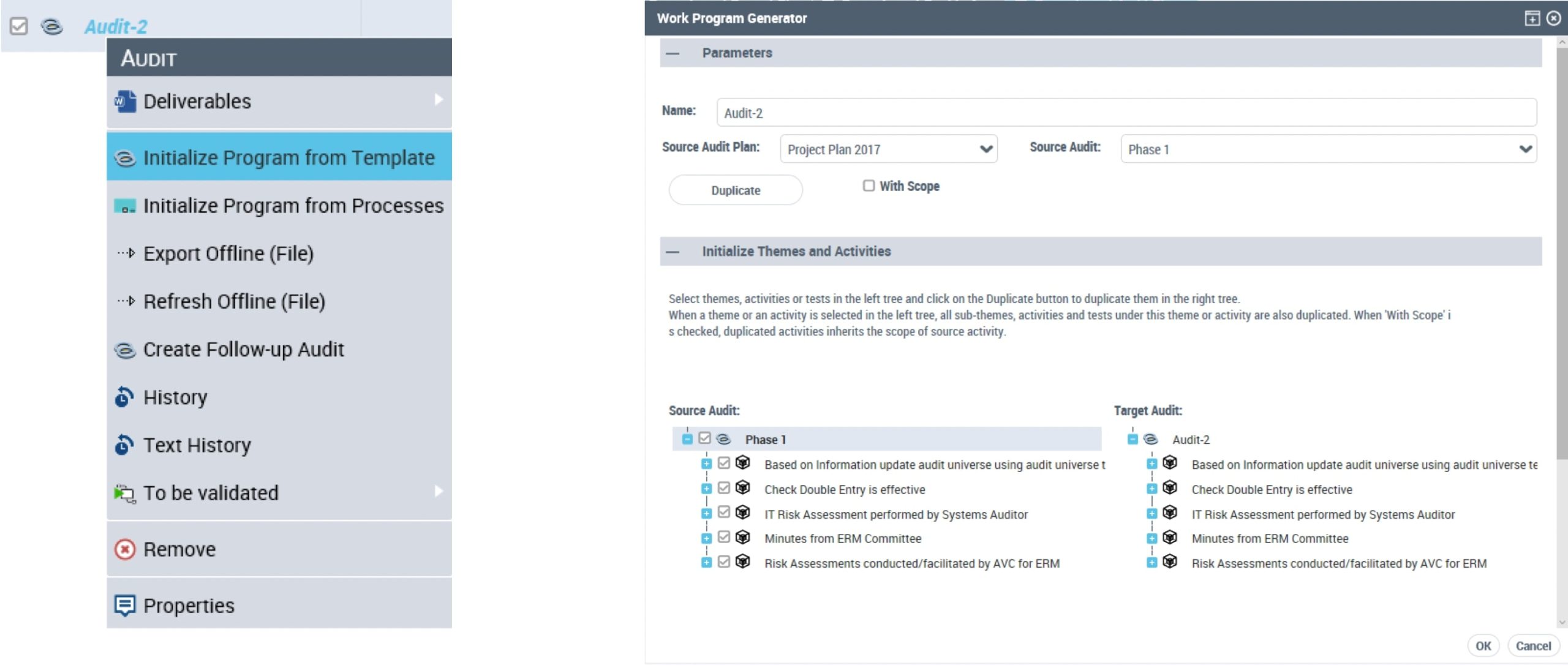 If an Audit is recurrent, Lead Auditors can save time by « cloning » an already existing Audit’s Work program thus saving planning time.