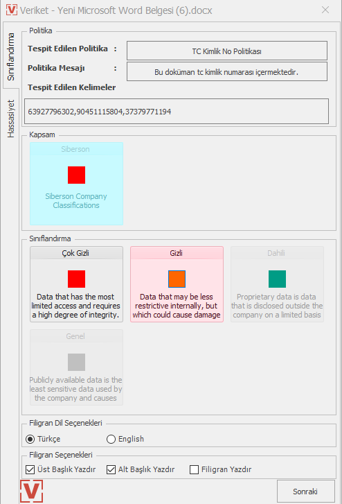 Gizlilik seviyeleri belirlenmiş verileriniz, seviyelerine göre etiketlenerek güvenlik çözümlerinizin tanıyabileceği hale gelir.
